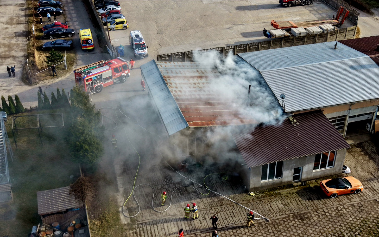 Groźny pożar w Kamieniu Pomorskim. Ogień objął halę warsztatową przy ulicy Szczecińskiej. Wewnątrz budynku znajdują się samochody, smary oraz materiały łatwopalne, co stwarzało bezpośrednie zagrożenie wybuchem.