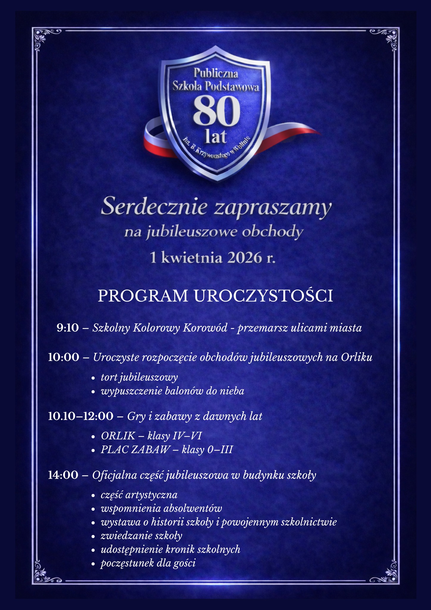 To będzie wyjątkowy dzień dla uczniów, nauczycieli i absolwentów. Publiczna Szkoła Podstawowa im. Bolesława Krzywoustego w Wolinie świętuje 80-lecie swojego istnienia i zaprasza wszystkich mieszkańców do wspólnego świętowania. Uroczystości jubileuszowe odbędą się 1 kwietnia 2026 roku i – jak zapowiadają organizatorzy – będą miały zarówno oficjalny, jak i rodzinny, radosny charakter.