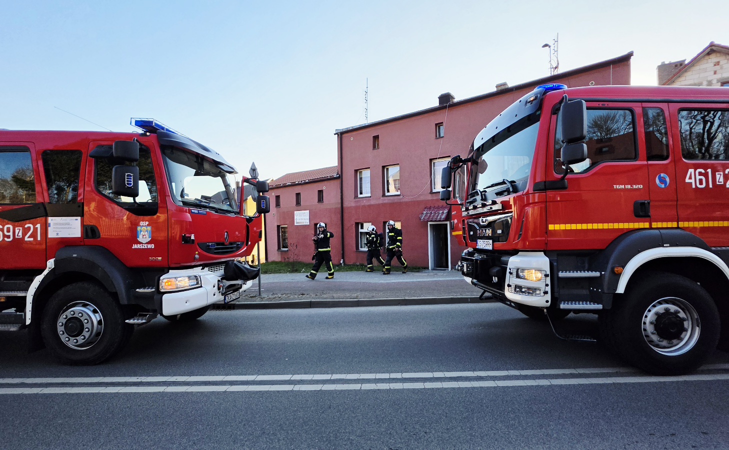 Na miejsce ruszyły liczne zastępy straży pożarnej z Jarszewa, Trzesbiszewa oraz dwa zastępy z Kamienia Pomorskiego. W działaniach uczestniczy także policja oraz zespół ratownictwa medycznego.