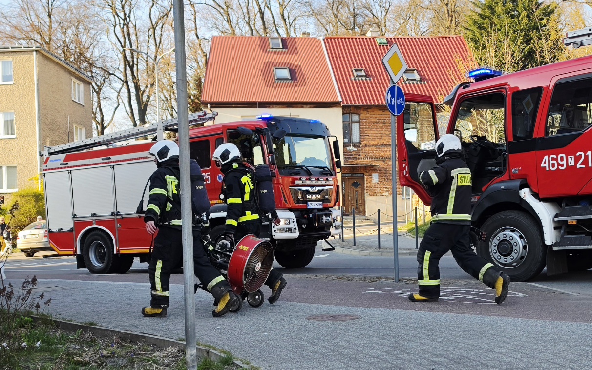 Niebezpieczne chwile przy ul. Mieszka I w Kamień Pomorski. Chwilę przed godziną 18 służby ratunkowe otrzymały zgłoszenie o silnym zadymieniu w jednym z mieszkań budynku wielorodzinnego. Sytuacja była na tyle poważna, że konieczna była natychmiastowa ewakuacja mieszkańców.