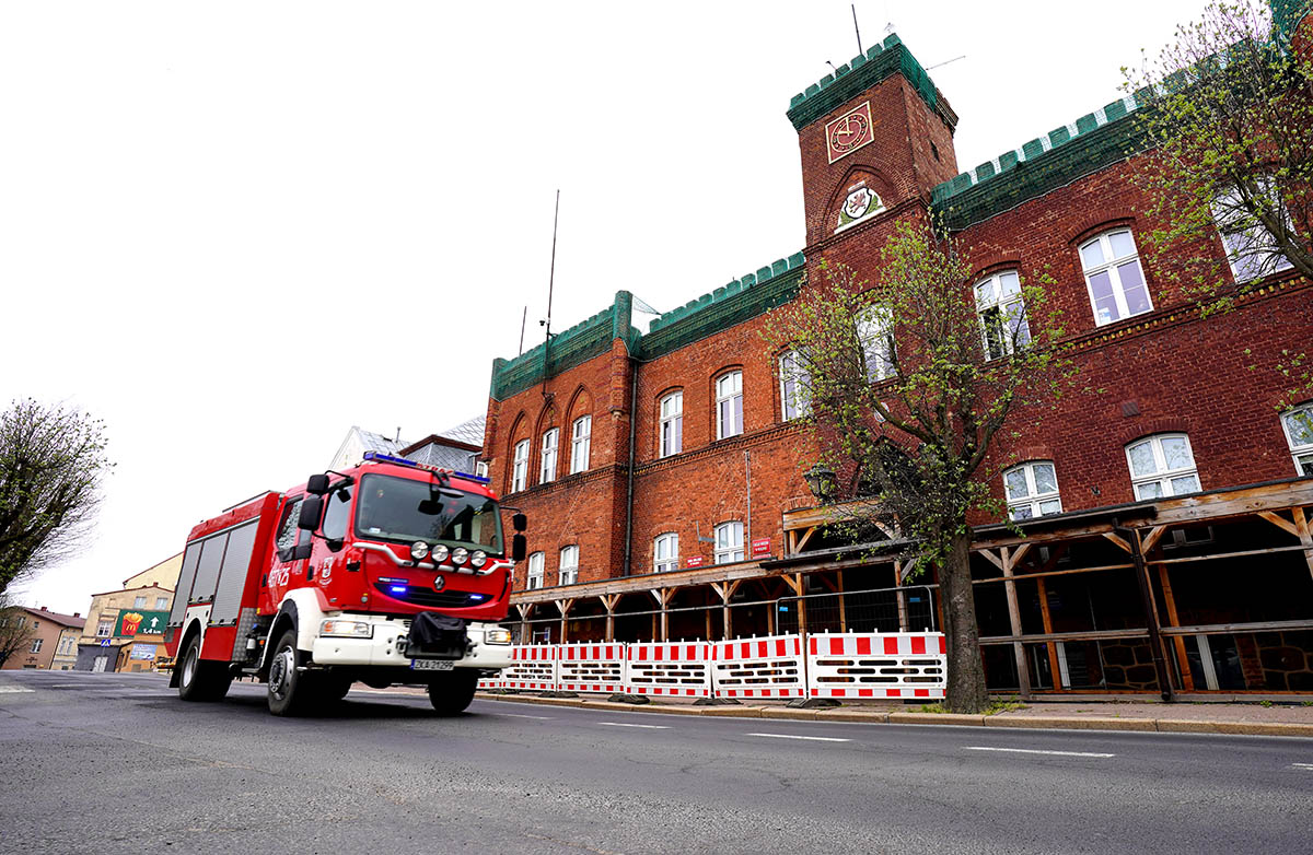 Alarm w Urzędzie Miejskim w Wolinie. Zadymienie, ewakuacja pracowników, wejście strażaków do budynku i poszukiwanie osoby, która miała pozostać wewnątrz obiektu. Tak wyglądał scenariusz działań, które dziś przed południem przeprowadzono w centrum Wolina.