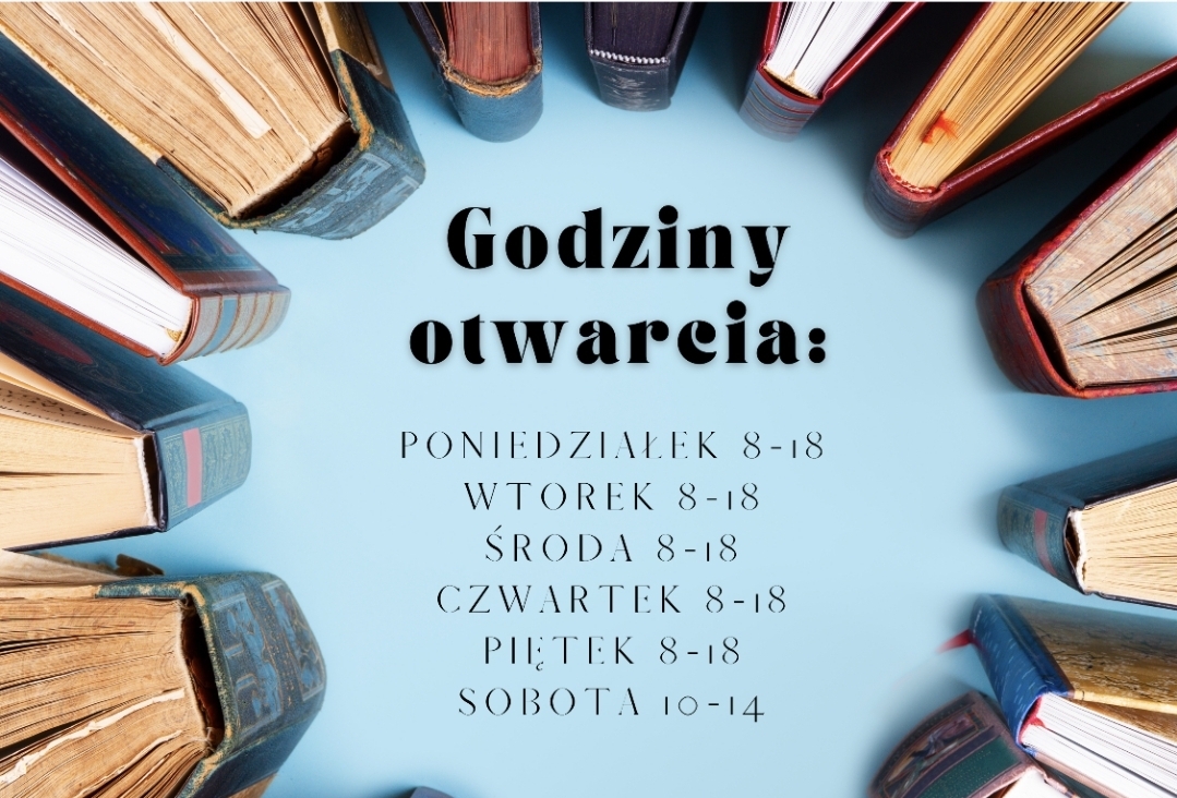 Drodzy czytelnicy. Od stycznia zmieniamy godziny otwarcia biblioteki, będziemy mieli otwarte od 8 do 18, każdego dnia. Biblioteka będzie również czynna we wszystkie soboty w godzinach od 10 do 14Dobra wiadomość dla czytelników i wszystkich miłośników książek. Od stycznia biblioteka wprowadza nowe, bardziej dostępne godziny otwarcia. Zmiany mają na celu ułatwienie korzystania z księgozbioru osobom pracującym, uczniom oraz wszystkim, którzy dotychczas mieli trudności z odwiedzeniem biblioteki w godzinach porannych.