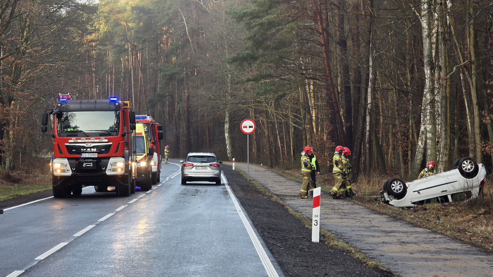 Na miejscu pracowali strażacy z Kamienia Pomorskiego oraz Dziwnowa, Wojskowa Straż Pożarna oraz zespół ratownictwa medycznego i policja. Służby zabezpieczały teren zdarzenia, udzielały pomocy oraz kierowały ruchem.
