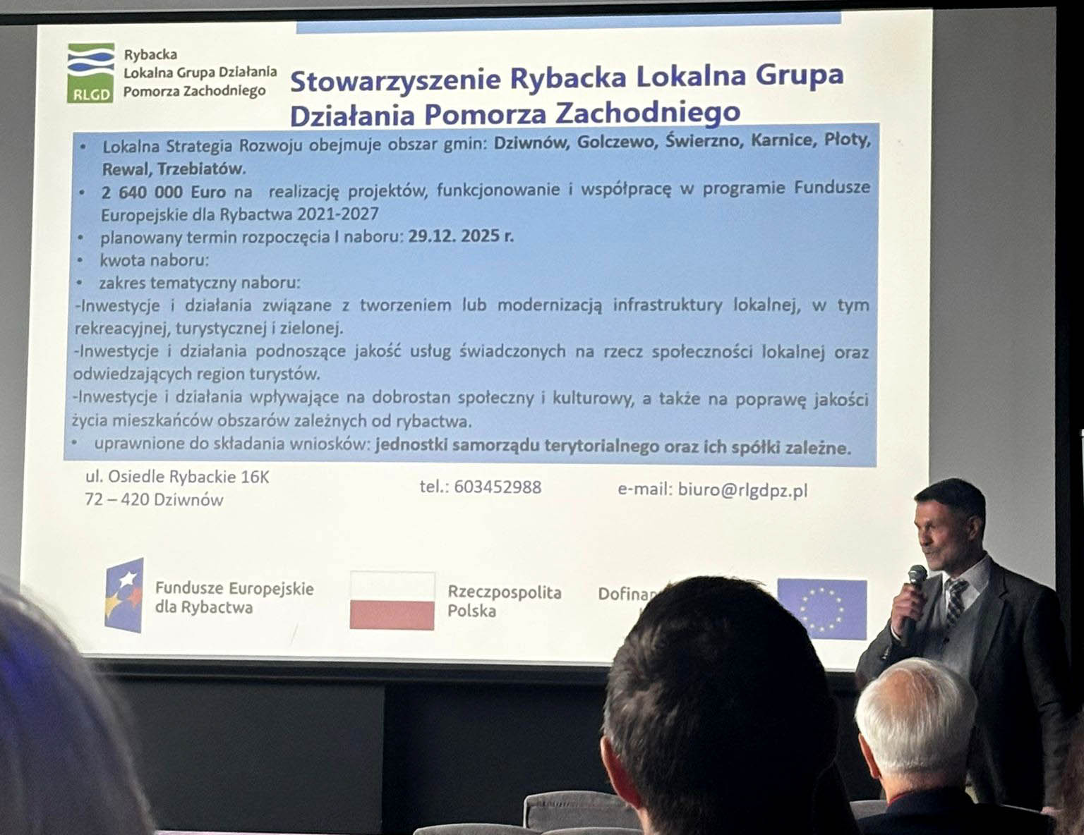 W wydarzeniu bardzo silnie zaznaczyła swoją obecność Rybacka Lokalna Grupa Działania Pomorza Zachodniego z siedzibą w Dziwnowie, której przedstawiciele uczestniczyli w konferencji jako jedna z kluczowych delegacji regionu. RLGD Dziwnów – będąca istotnym partnerem dla lokalnych społeczności rybackich – aktywnie brała udział w dyskusjach dotyczących przyszłych naborów i form wsparcia dla branży.