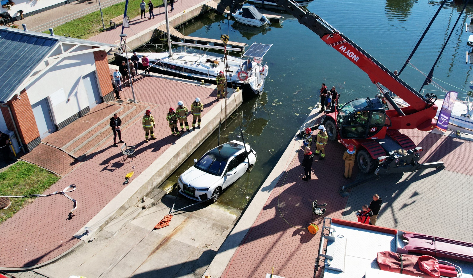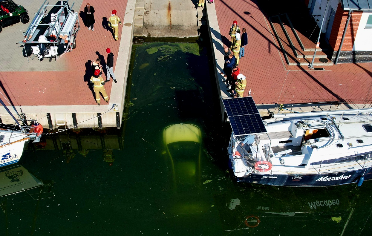 Do nietypowego zdarzenia doszło dziś (3 października) po godzinie 10:00 na terenie mariny w Dziwnowie przy ulicy Żeromskiego. Podczas wodowania skutera samochód elektryczny – który znajdował się na rampie slipowej – stoczył się do wody i zatonął przy nabrzeżu.
