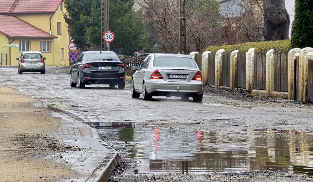Mieszkańcy wskazują, że koleiny są na tyle głębokie, iż istnieje realne ryzyko uszkodzenia zawieszenia pojazdów. W niektórych miejscach stojąca woda zakrywa ubytki w nawierzchni, co dodatkowo zwiększa zagrożenie.