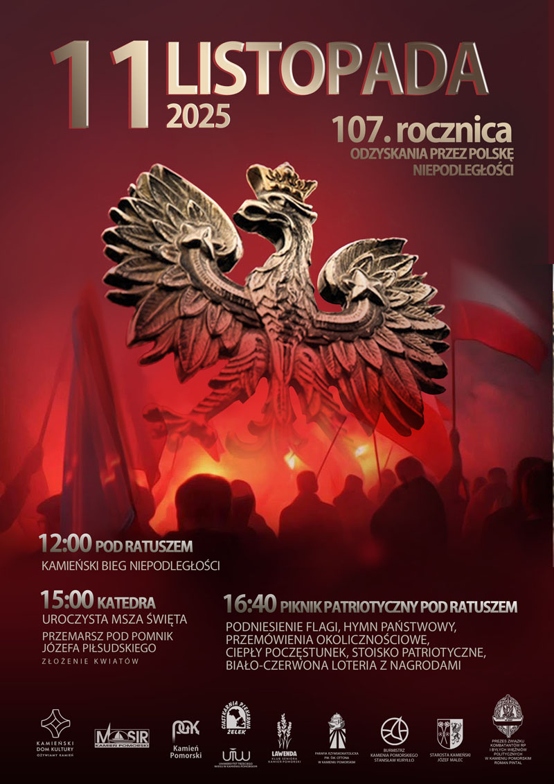 Obchody rozpoczną się o godzinie 12:00 pod ratuszem, gdzie wystartuje Kamieński Bieg Niepodległości – wydarzenie, które łączy sportowy duch rywalizacji z radosnym świętowaniem narodowej rocznicy.