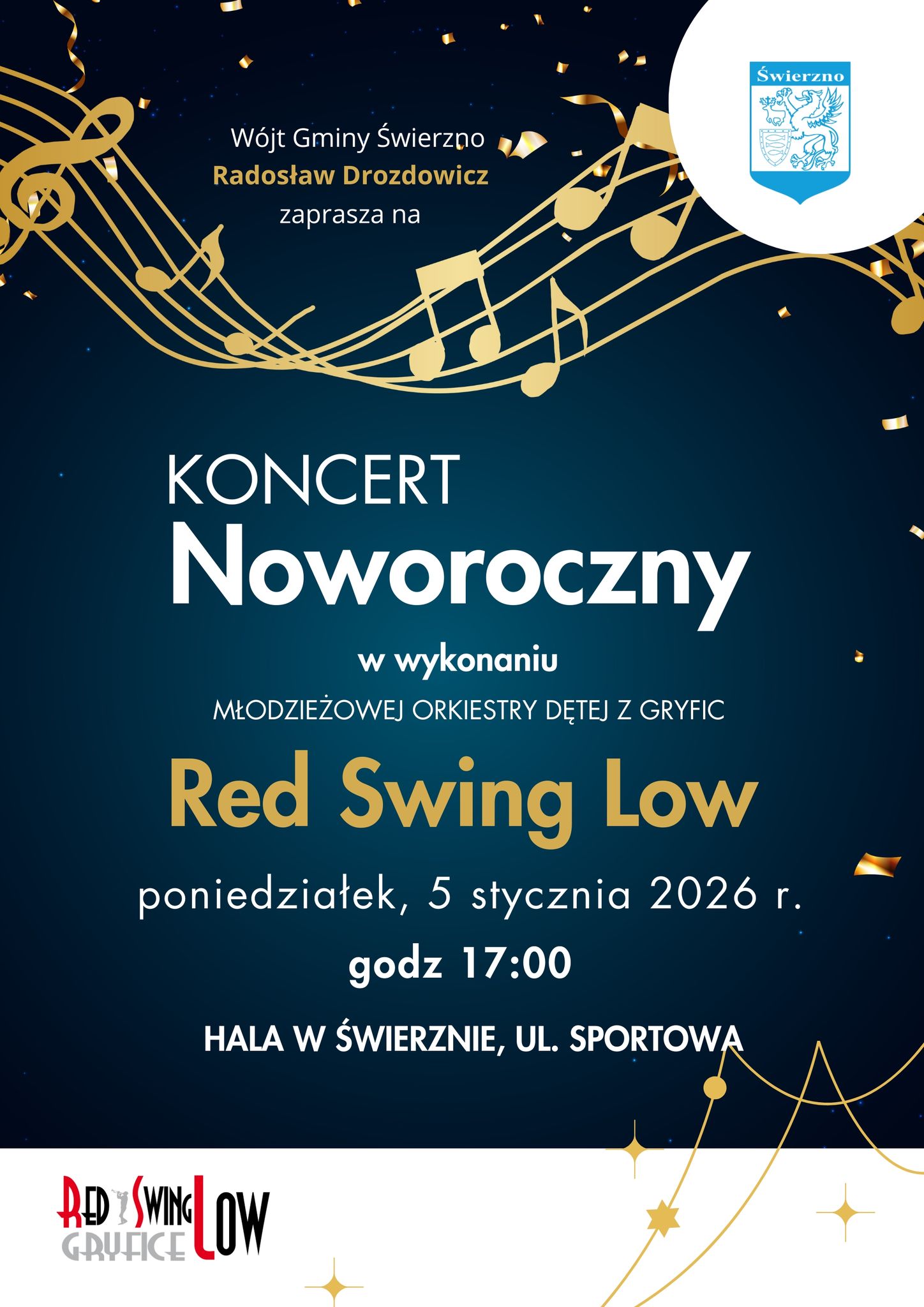Nowy Rok w Świerznie rozpocznie się muzycznie. 5 stycznia 2026 roku odbędzie się Koncert Noworoczny w wykonaniu Młodzieżowej Orkiestry Dętej z Gryfic – Red Swing Low.