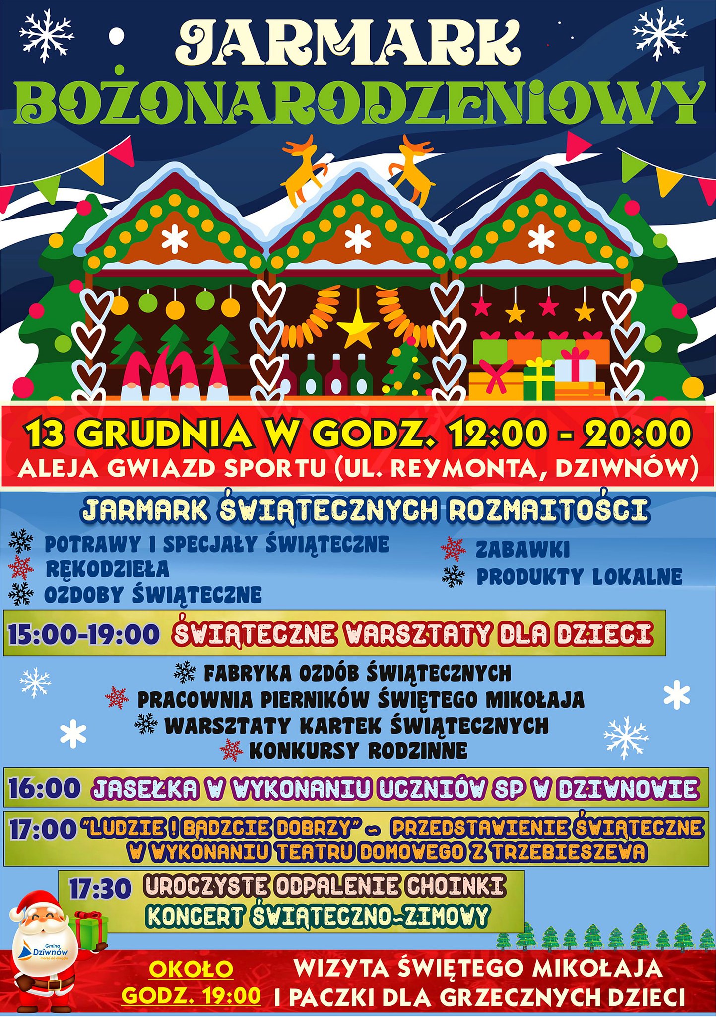 Kulminacyjnym momentem wydarzenia będzie uroczyste odpalenie choinki o godzinie 17.30, połączone z koncertem świąteczno-zimowym, który wprowadzi wszystkich w wyjątkowy, grudniowy nastrój. Na zakończenie, około godziny 19.00, do Dziwnowa zawita Święty Mikołaj, który wręczy paczki grzecznym dzieciom, wywołując uśmiech na twarzach najmłodszych uczestników jarmarku.