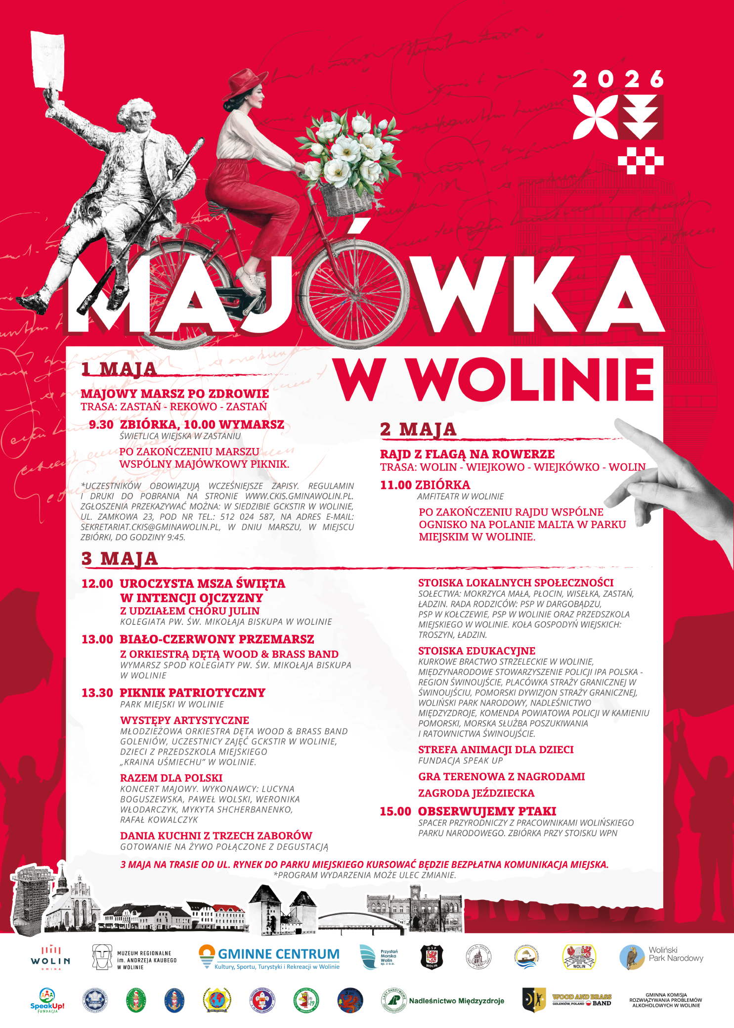 Burmistrz Wolina – Ewa Grzybowska, Gmina Wolin, Gminne Centrum Kultury, Sportu, Turystyki i Rekreacji, Przystań Morska oraz Muzeum Regionalne im. Andrzeja Kaubego zapraszają na wyjątkowe majówkowe świętowanie. W programie znajdziemy coś dla miłośników sportu, patriotycznych tradycji oraz rodzinnego wypoczynku na świeżym powietrzu.