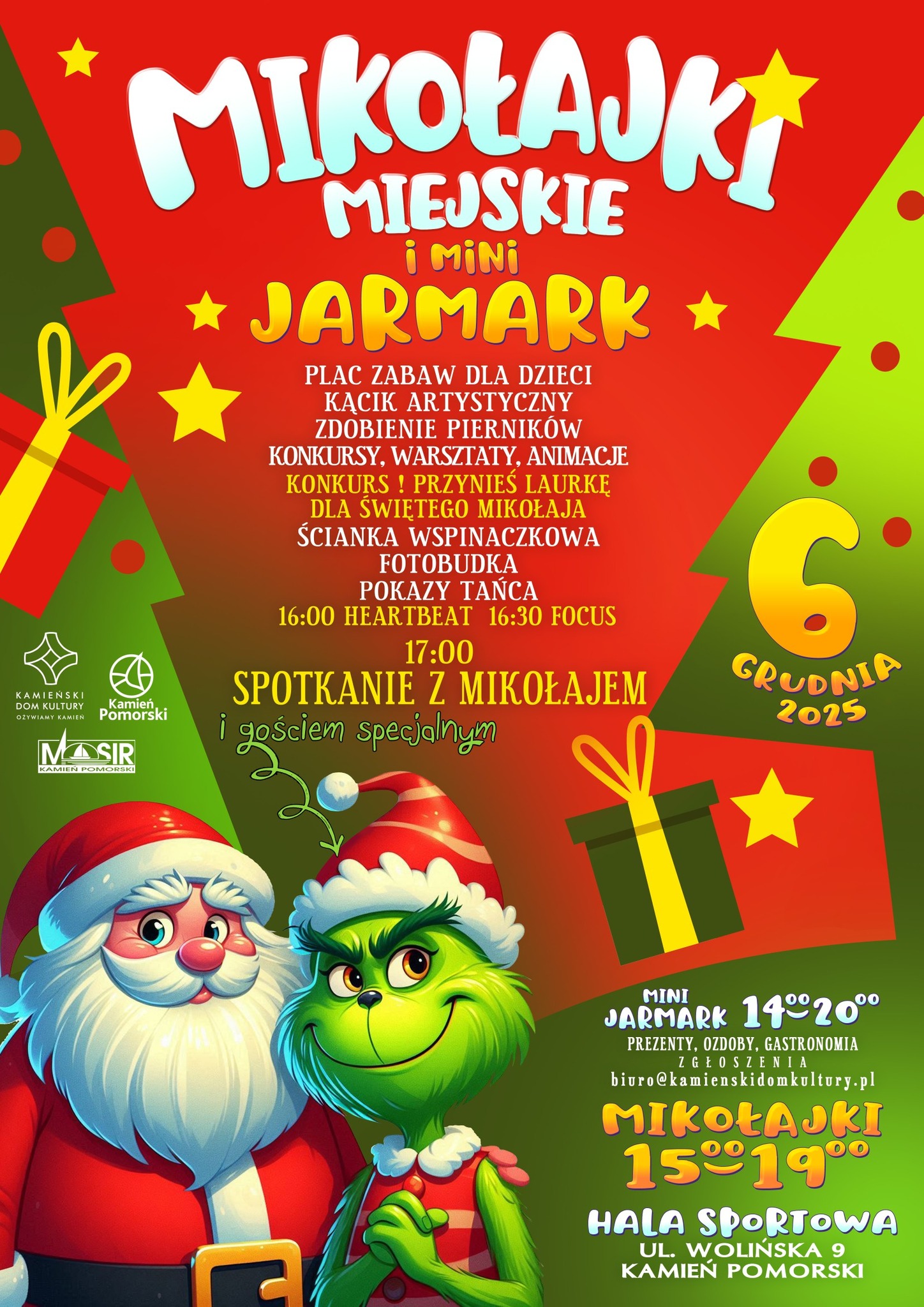 Kamieński Dom Kultury wspólnie z Miejskim Ośrodkiem Sportu i Rekreacji zaprasza wszystkich mieszkańców – małych i dużych – na tegoroczne Mikołajki Miejskie połączone z miniJarmarkiem świątecznym. Wydarzenie odbędzie się 6 grudnia na Hali Sportowej przy ul. Wolińskiej 9 i potrwa od godziny 15:00 do 19:00, natomiast miniJarmark działać będzie już od godz. 14:00.