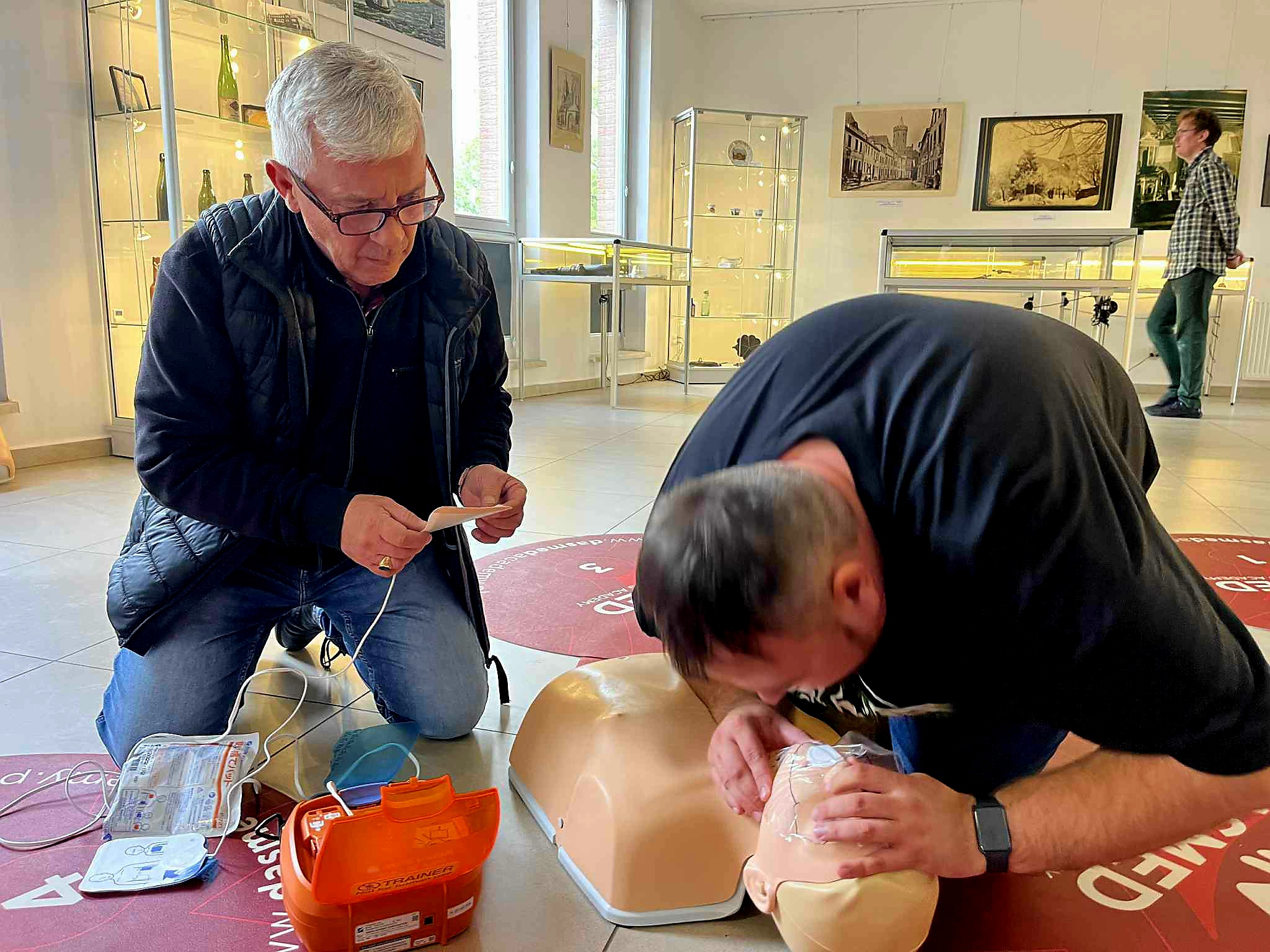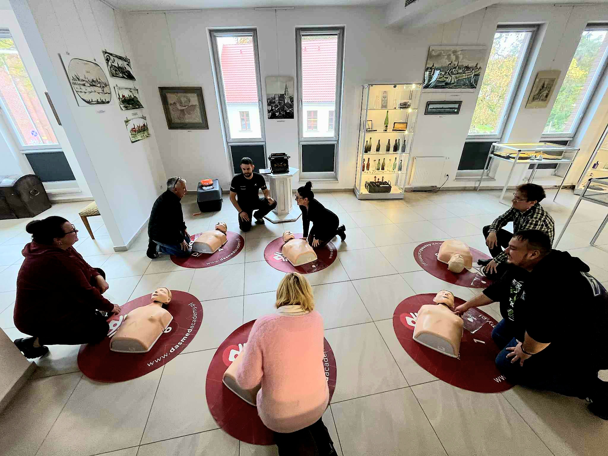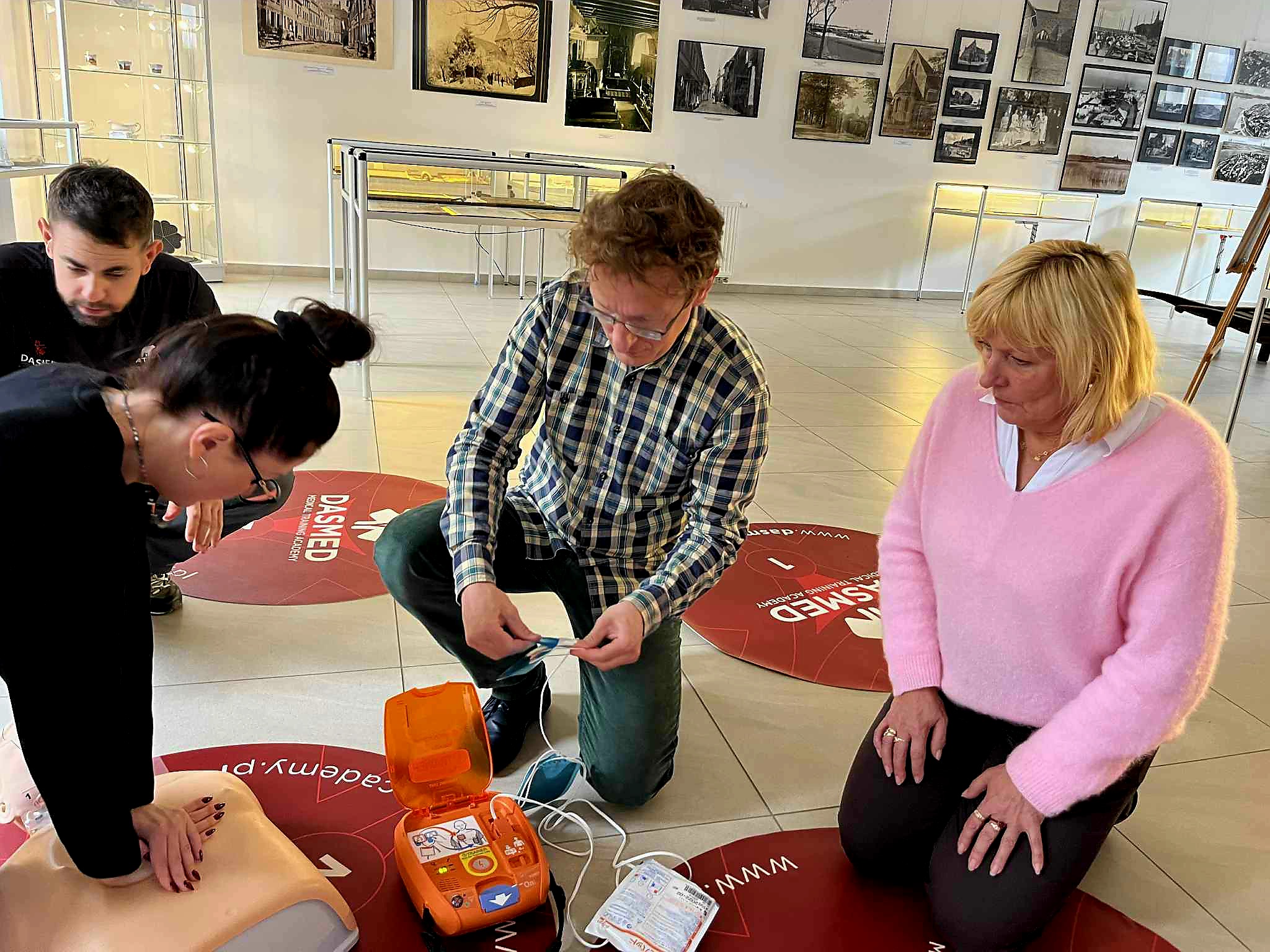 Pracownicy Muzeum zostali przeszkoleni w zakresie udzielania pierwszej pomocy oraz obsługi defibrylatora AED, co pozwoli im skutecznie reagować w sytuacjach zagrożenia życia do momentu przybycia służb ratunkowych.