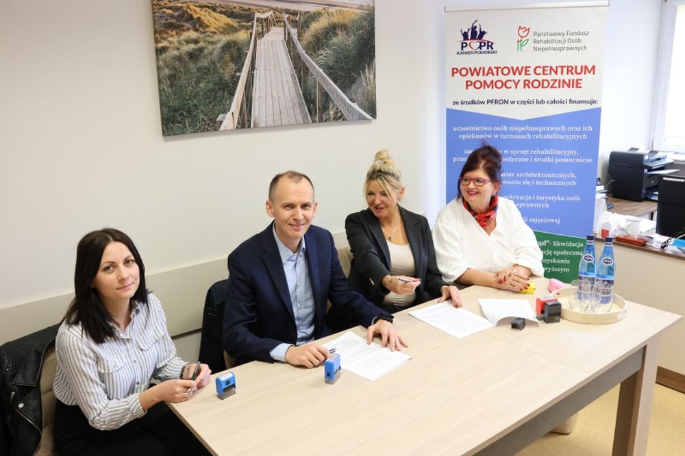 Powiat Kamieński konsekwentnie wspiera działania na rzecz osób z niepełnosprawnościami. W siedzibie Powiatowego Centrum Pomocy Rodzinie w Kamieniu Pomorskim podpisano umowy o dofinansowanie zadań realizowanych w ramach programu „Program wyrównywania różnic między regionami III” finansowanego ze środków Państwowego Funduszu Rehabilitacji Osób Niepełnosprawnych (PFRON).