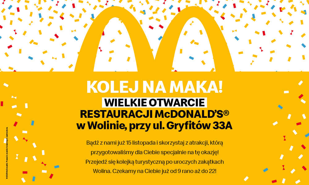 To już oficjalne – 15 listopada (sobota) nastąpi długo wyczekiwane otwarcie restauracji McDonald’s w Wolinie. Nowy lokal stanie się nie tylko pierwszym w historii miasta, ale również jubileuszową – 600. restauracją McDonald’s w Polsce! Restauracja powstała przy drodze krajowej nr...
