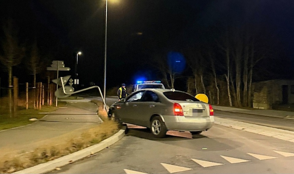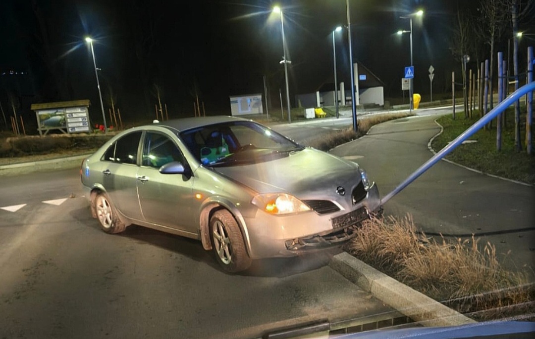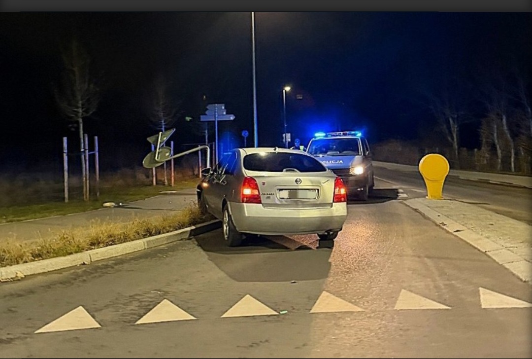 W rejonie ronda w Wapnicy kierujący Nissanem stracił panowanie nad pojazdem, zjechał na przeciwległy pas ruchu i uderzył w znak drogowy. Na miejsce natychmiast skierowano policyjny patrol.