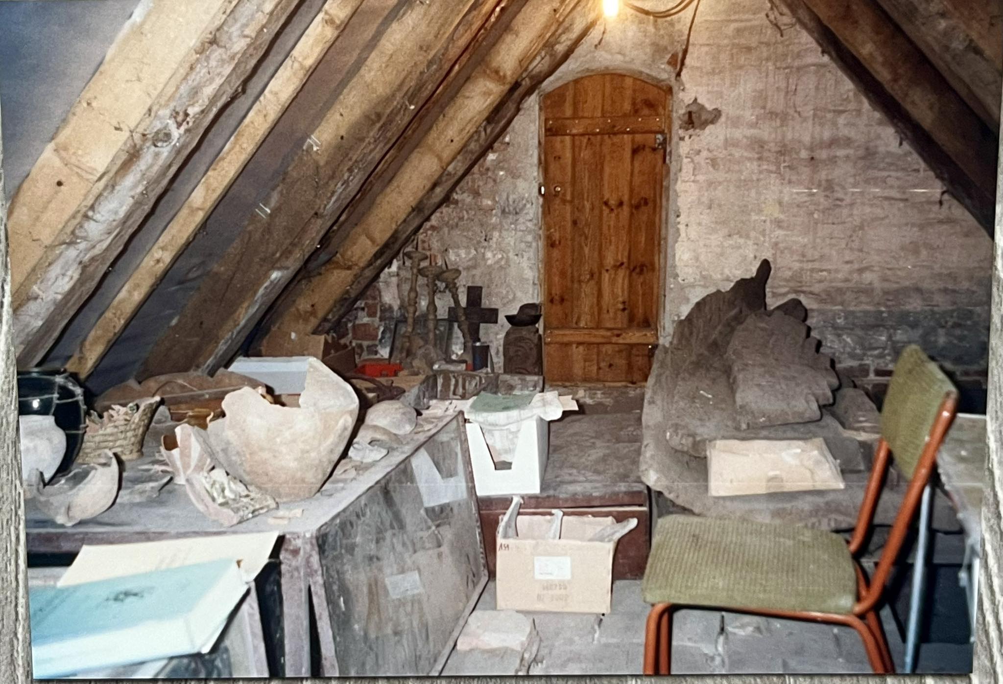 Jak wspomina Grzegorz Kurka, do wejścia na strych doszło za zgodą ówczesnego proboszcza księdza Dariusza Żarkowskiego. Już po chwili stało się jasne, że nie jest to zwykła przestrzeń magazynowa. Wśród zalegających przedmiotów znajdowały się liczne zabytki obejmujące szeroki przedział czasowy – od neolitu aż po czasy nowożytne.