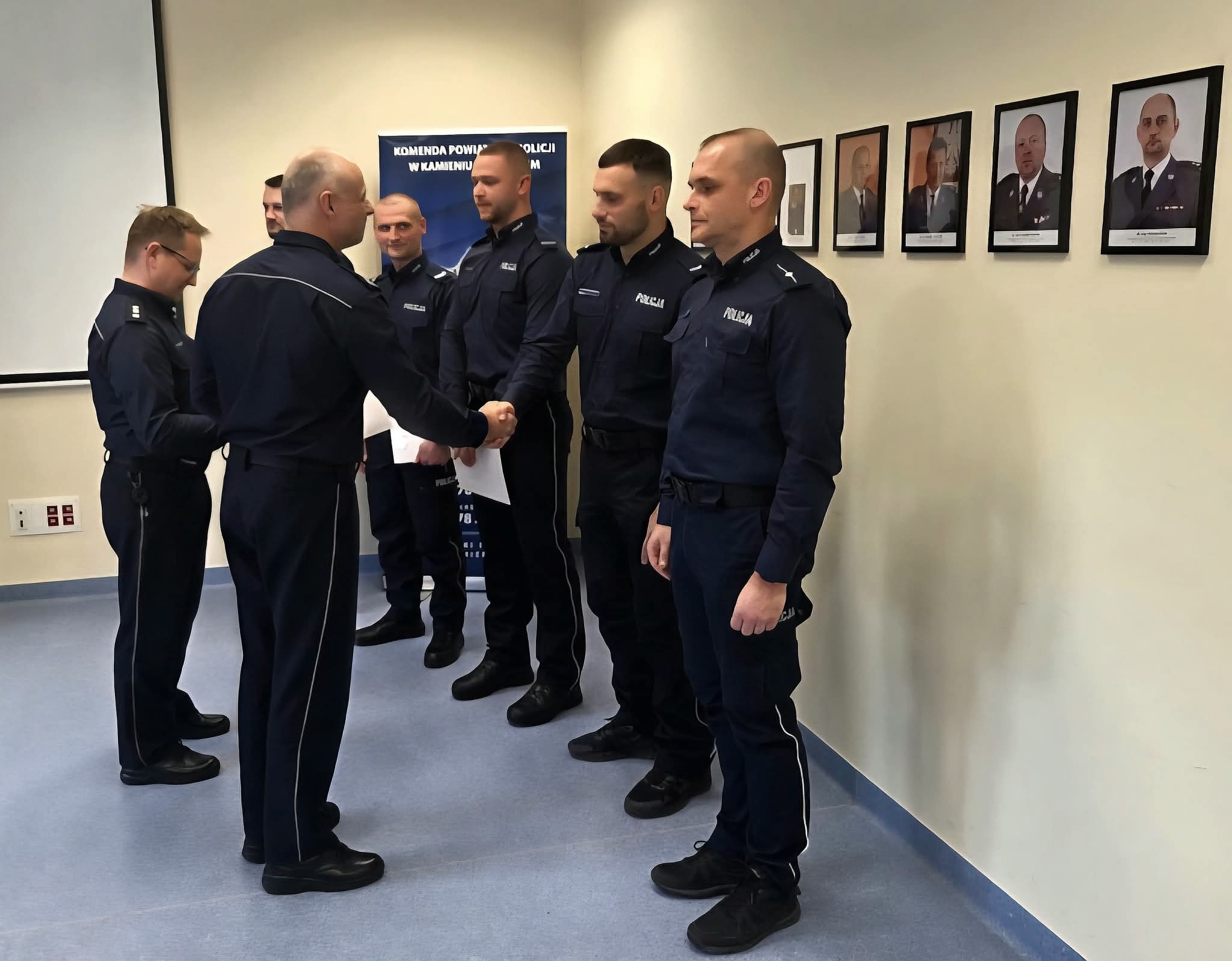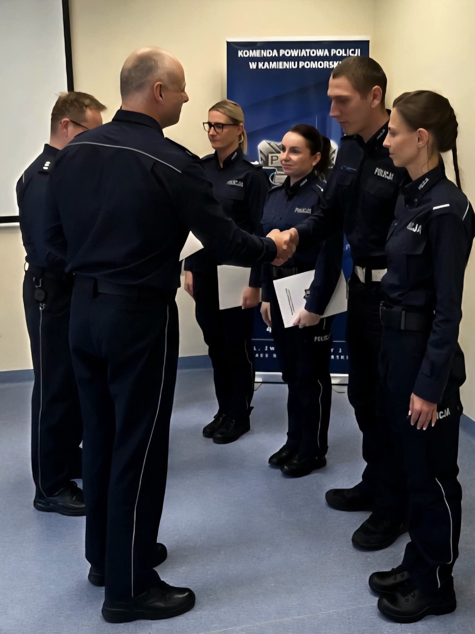 W Komendzie Powiatowej Policji w Kamieniu Pomorskim odbyła się dziś uroczystość, podczas której wyróżniono funkcjonariuszy szczególnie zaangażowanych w pracę na rzecz bezpieczeństwa mieszkańców powiatu. Spotkanie miało wyjątkowy charakter — podkreślono podczas niego, jak ważna jest codzienna, odpowiedzialna i często wymagająca służba policjantów.
