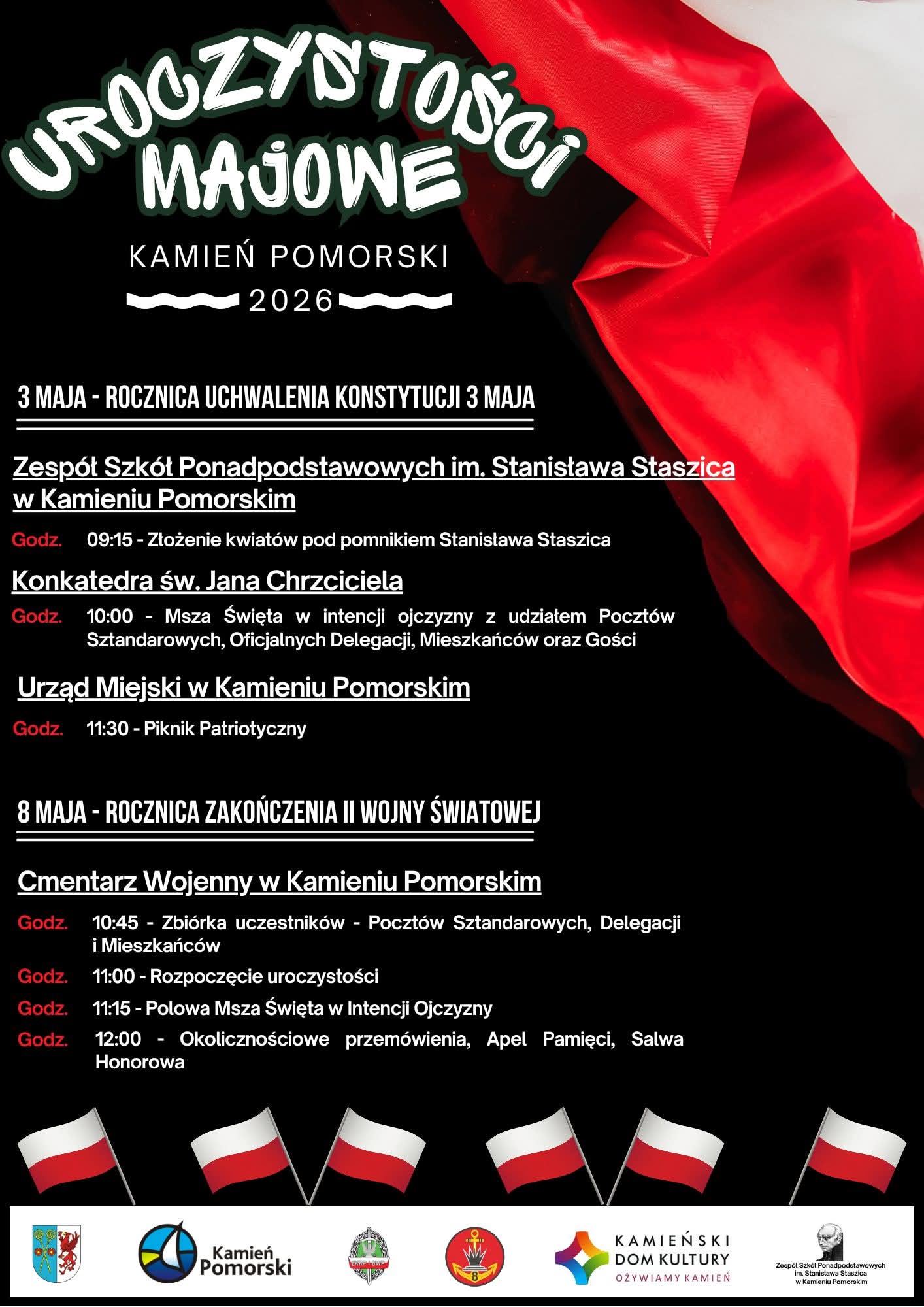 Majowe uroczystości w Kamieniu Pomorskim będą okazją do wspólnego uczczenia ważnych wydarzeń z historii Polski, oddania hołdu tym, którzy walczyli o wolność Ojczyzny, a także do spotkania mieszkańców w patriotycznej atmosferze.