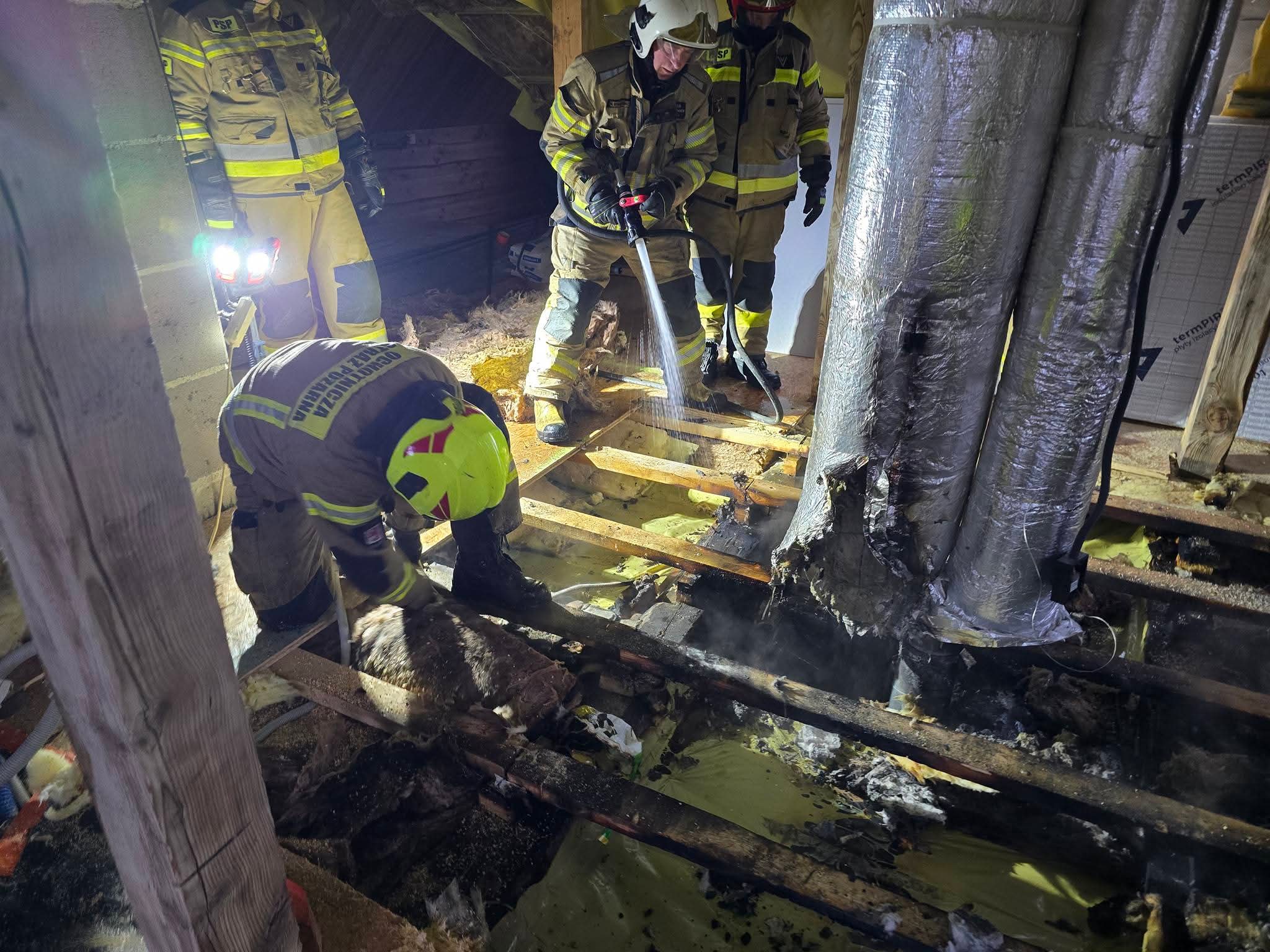Dzięki czujności mieszkańców i natychmiastowemu zgłoszeniu zagrożenia, pożar został szybko zauważony. Strażacy po przybyciu na miejsce niezwłocznie przystąpili do działań gaśniczych. Konieczne było rozebranie części stropu i dokładne dogaszenie zarzewi ognia ukrytych w elementach konstrukcyjnych oraz izolacji.