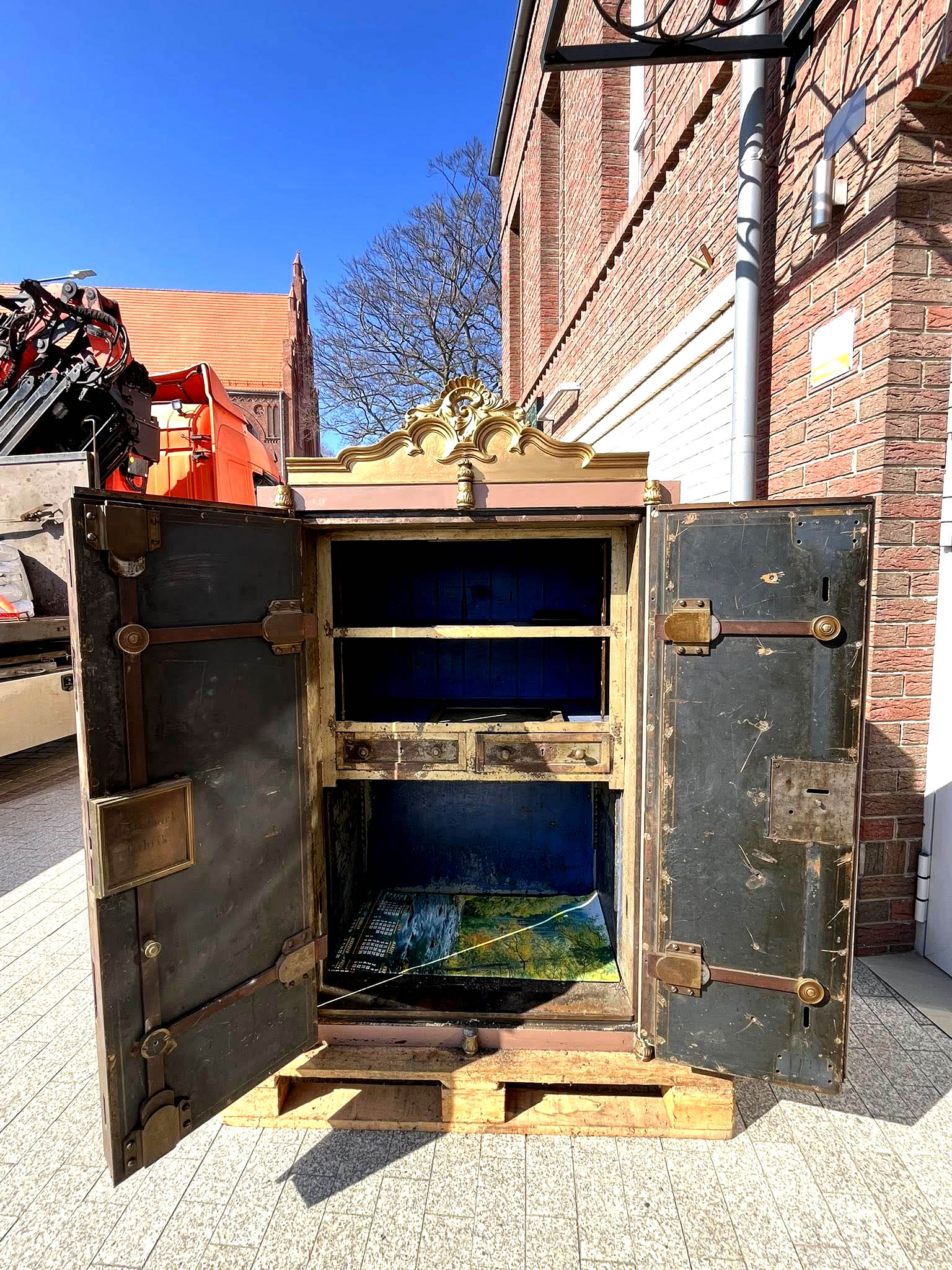 Transport kasy do muzeum był przedsięwzięciem wymagającym i niełatwym pod względem logistycznym – jej znaczne rozmiary i ciężar wymagały odpowiedniego przygotowania i zabezpieczenia. Dzięki wspólnemu wysiłkowi obiekt bezpiecznie trafił do muzeum, gdzie już wkrótce będzie mógł zostać udostępniony zwiedzającym.