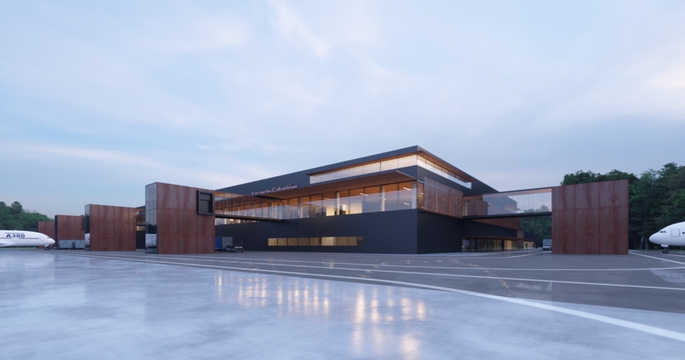 Pierwszym etapem inwestycji jest budowa tymczasowego terminala przylotów o powierzchni 700 m². Obiekt ten – po zakończeniu całej inwestycji – zostanie przekształcony w zaplecze biurowe i socjalne dla służb lotniskowych. Jego bryła oraz kolorystyka będą w pełni zintegrowane z nowym terminalem głównym, tworząc spójną, nowoczesną przestrzeń operacyjną.