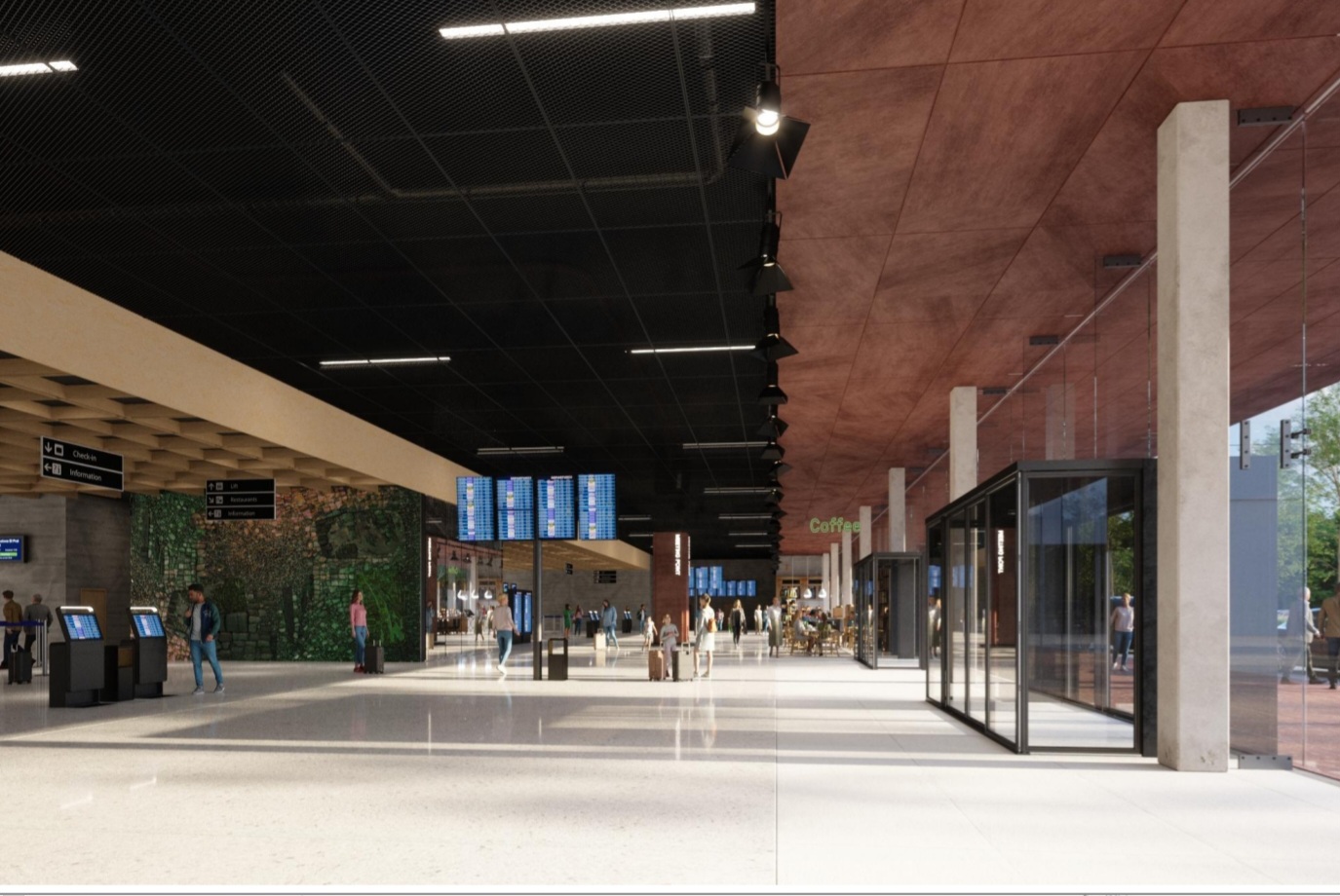 Nowy terminal – według zaprezentowanych wizualizacji – będzie charakteryzował się nowoczesną, minimalistyczną architekturą z elementami drewna i szkła. Wnętrze zaplanowano tak, by zapewniało pasażerom przestrzeń, wygodę i naturalne światło. Znajdą się w nim strefy odpoczynku, gastronomia, sklepy i nowoczesne punkty obsługi podróżnych.