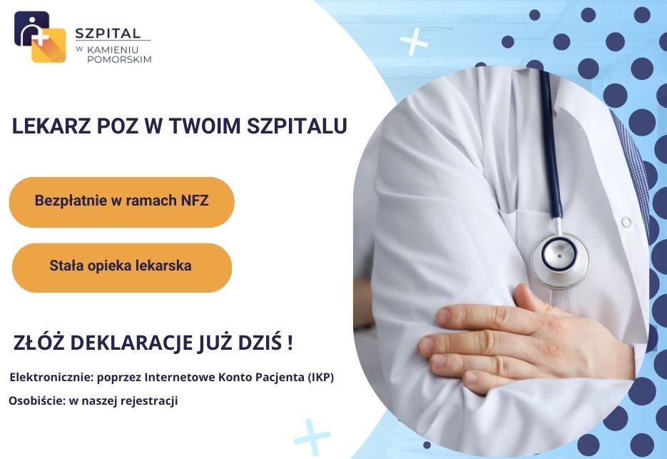 Szpital w Kamieniu Pomorskim zachęca mieszkańców do składania deklaracji wyboru lekarza rodzinnego w działającej na miejscu Poradni POZ, czyli Podstawowej Opieki Zdrowotnej. Pacjenci mają tam do dyspozycji trzech lekarzy rodzinnych, którzy diagnozują, prowadzą leczenie i zapewniają stałą opiekę medyczną.