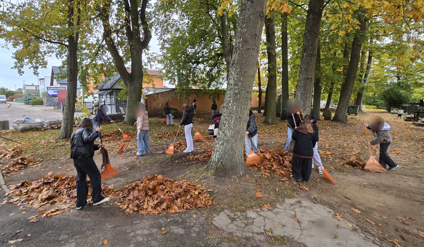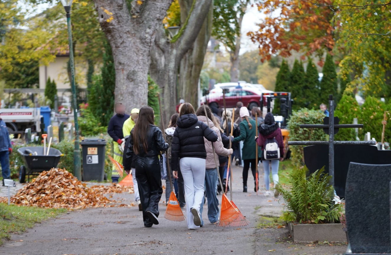 Nie tylko pracownicy PGK, ale także uczniowie Szkoły Podstawowej nr 2 im. Leonida Teligi w Kamieniu Pomorskim włączyli się w jesienne porządki na cmentarzu komunalnym. W ramach szkolnego wolontariatu młodzież chętnie chwyciła za grabie i rękawiczki, pomagając w sprzątaniu alejek i zbieraniu liści.