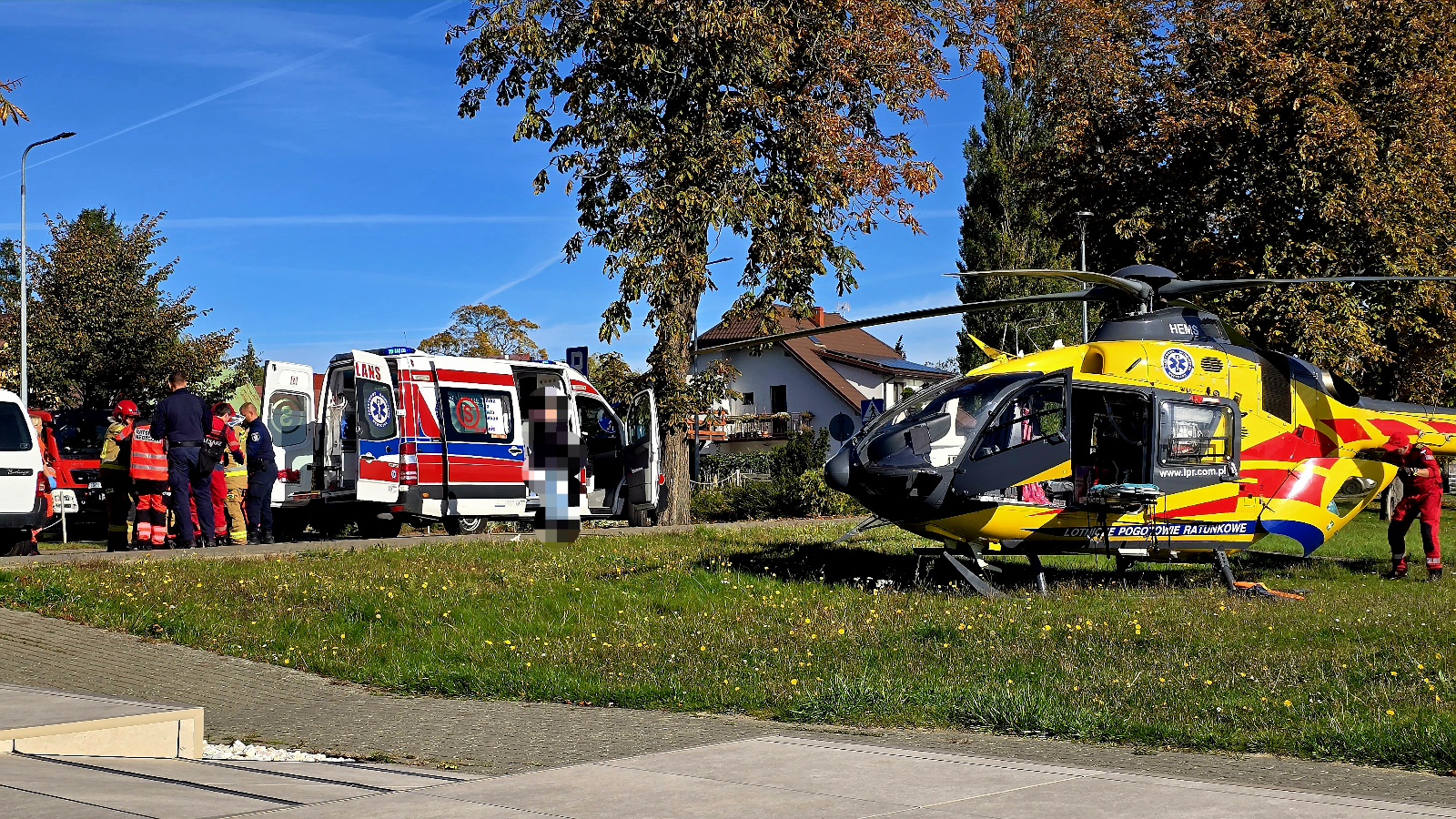 Z uwagi na obrażenia, w tym poważny uraz kręgosłupa, zdecydowano o wezwaniu śmigłowca Lotniczego Pogotowia Ratunkowego. Kobieta została przetransportowana drogą lotniczą do szpitala w Gryficach.