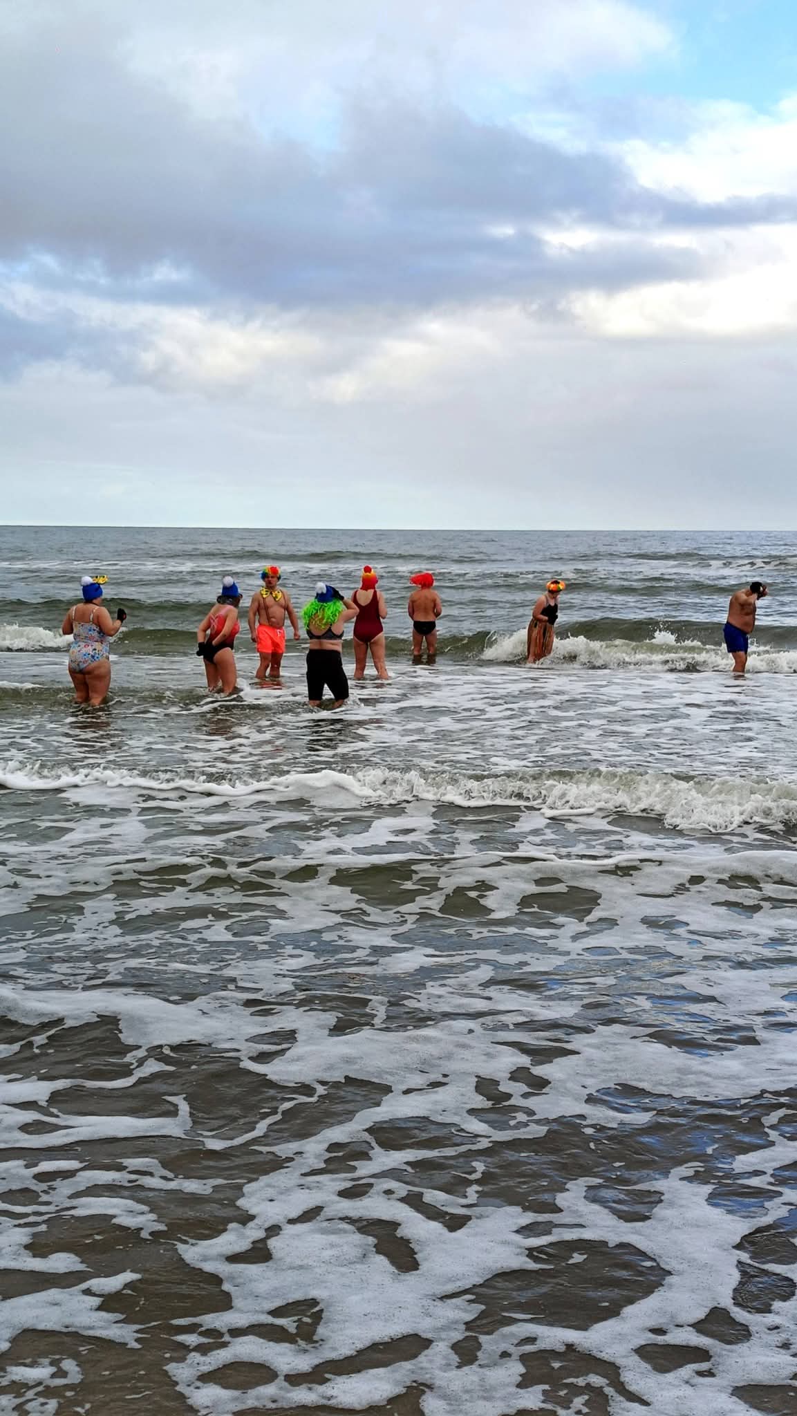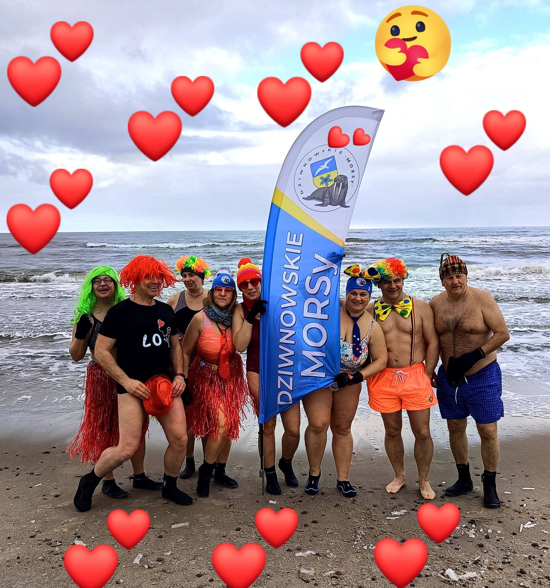 Na plaży pojawiły się kolorowe peruki, zabawne akcesoria i walentynkowe akcenty. Nie zabrakło czerwonych serc, uśmiechów oraz odrobiny kontrolowanego szaleństwa. Wspólne zanurzenie w lodowatej wodzie było nie tylko próbą charakteru, ale przede wszystkim okazją do integracji i dobrej zabawy.