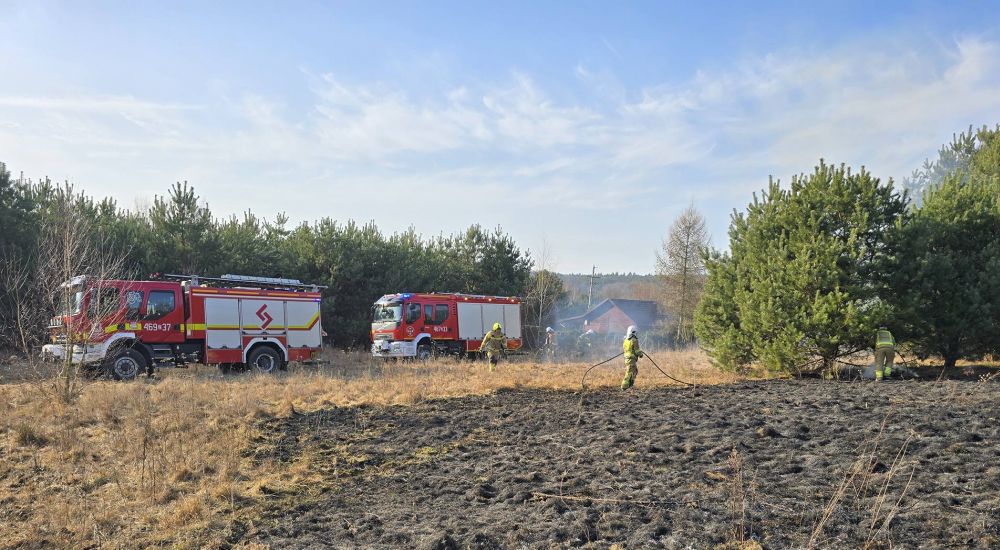 Strażacy zostali wezwani do pożaru suchej trawy i nieużytków. Na miejsce skierowano zastępy, które natychmiast podjęły działania gaśnicze. Ogień objął fragment terenu porośniętego suchą roślinnością. W takich warunkach, przy wietrznej pogodzie i wysuszonej trawie, pożar potrafi rozprzestrzenić się bardzo szybko. Dzięki sprawnej akcji strażaków ogień udało się opanować, zanim zagroził pobliskim drzewom oraz zabudowaniom.
