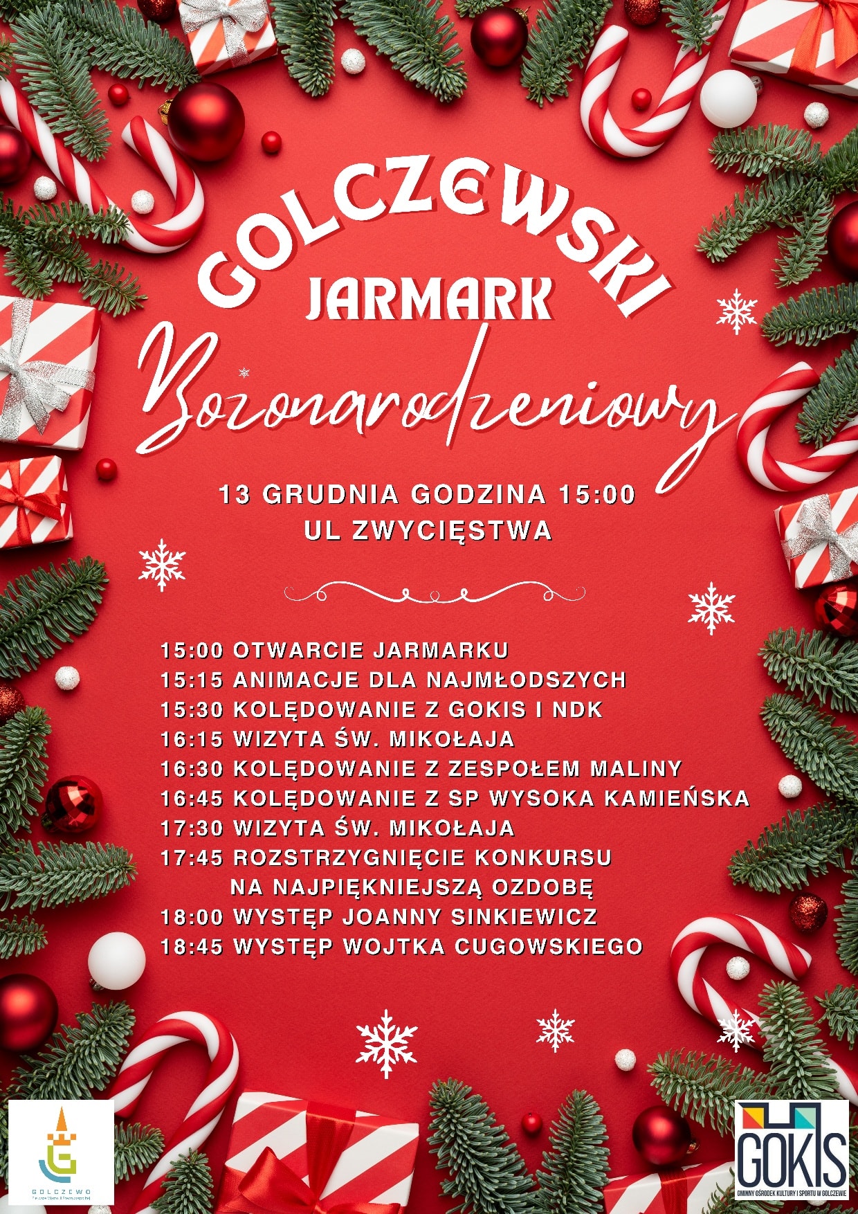 Już jutro Gmina Golczewo zaprasza wszystkich na jedno z najbardziej magicznych wydarzeń w roku! Specjalnie dla Was zostanie zamknięty fragment ulicy Zwycięstwa – między rondem a ulicą Szkolną – aby stworzyć wyjątkową, bezpieczną i pełną magii przestrzeń dla naszego jarmarku bożonarodzeniowego.