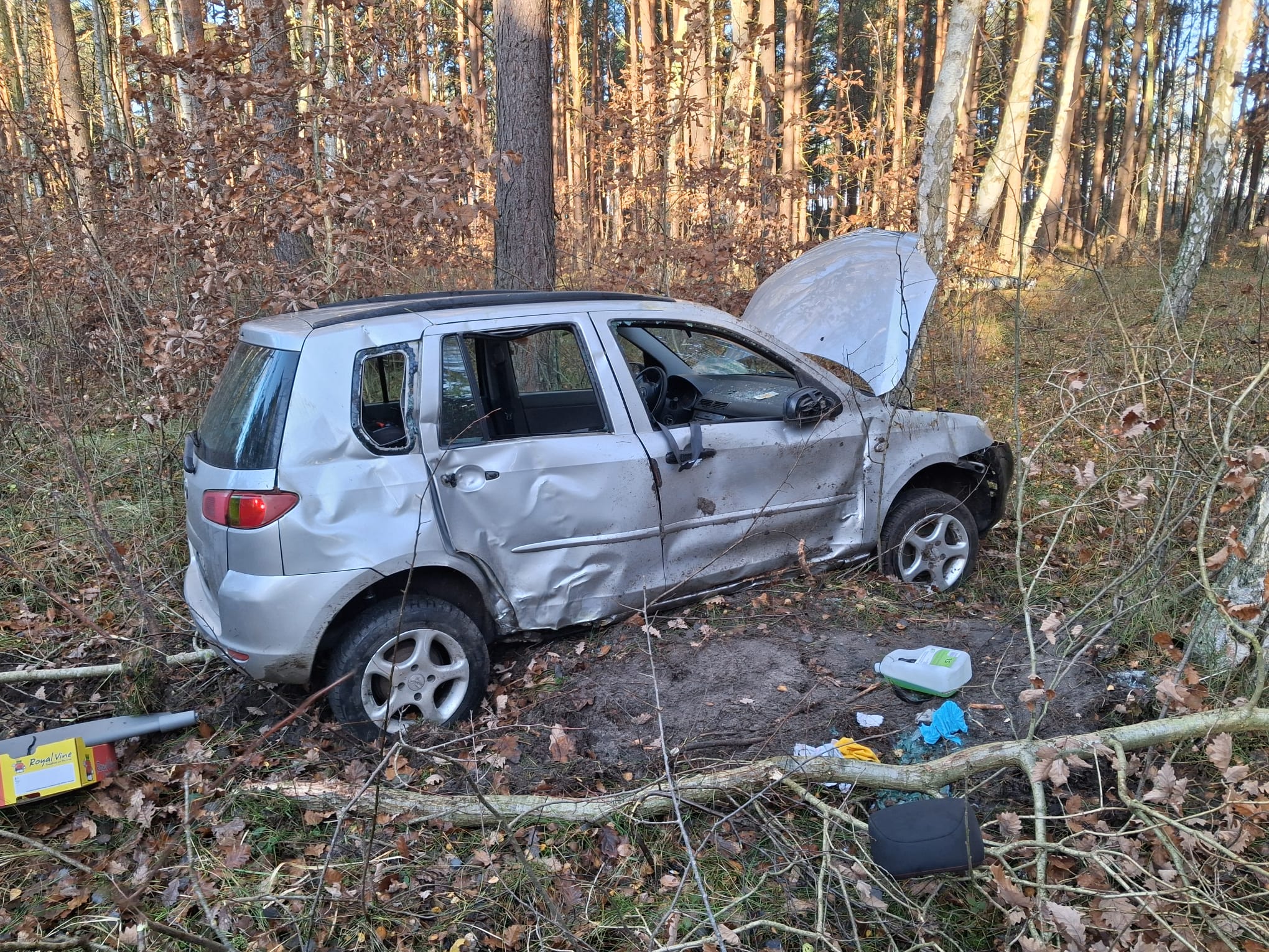 Do groźnie wyglądającego zdarzenia drogowego doszło dziś kilkanaście minut przed godziną 10:00 na drodze pomiędzy Kołczewem a Międzywodziem, w pobliżu miejscowości Świętouść. Kierująca samochodem osobowym, z nieustalonych jeszcze przyczyn, straciła panowanie nad pojazdem, który następnie wypadł z jezdni i dachował.