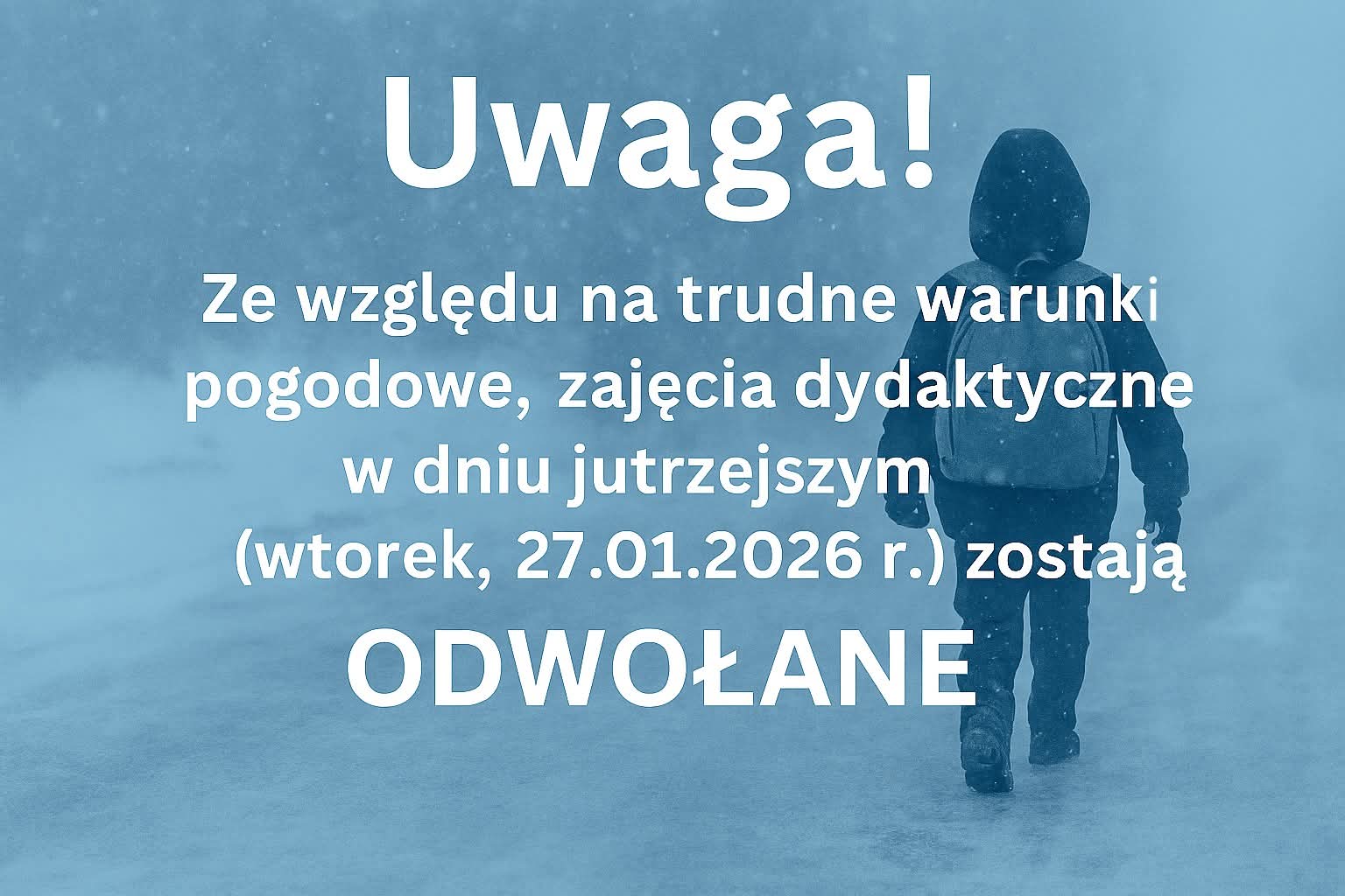 Decyzja została podjęta z troski o bezpieczeństwo dzieci w związku z bardzo trudnymi warunkami pogodowymi, w tym marznącymi opadami, oblodzonymi drogami oraz chodnikami. Samorząd podkreśla, że poranne dojazdy do szkół w obecnych warunkach mogłyby stwarzać realne zagrożenie.