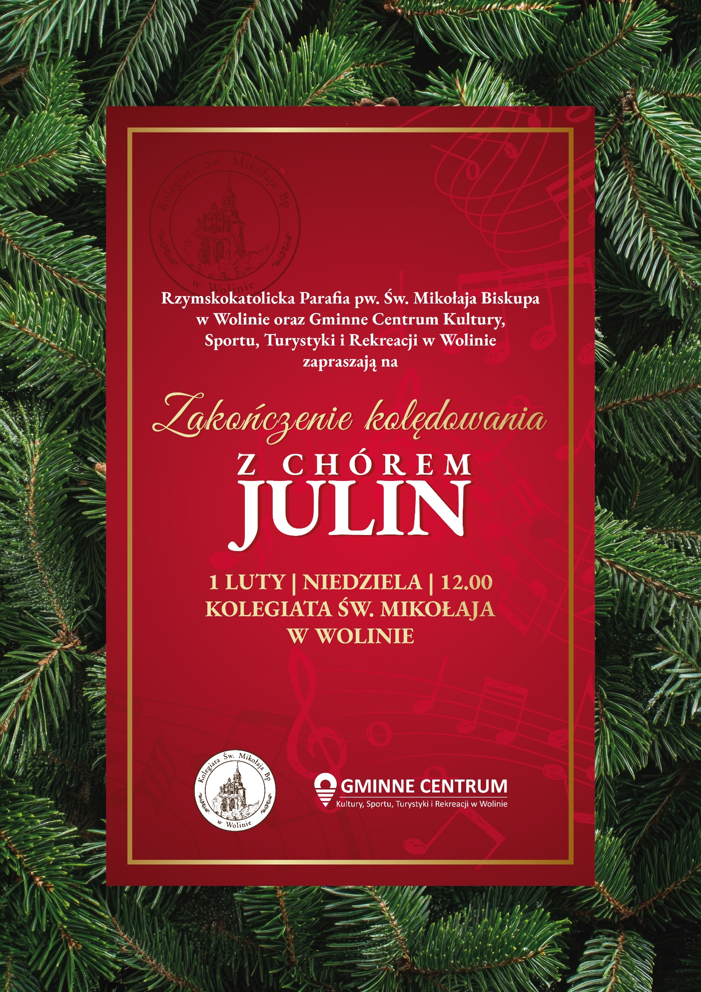 Gminne Centrum Kultury w Wolinie, wspólnie z Rzymskokatolicką Parafią pw. św. Mikołaja Biskupa w Wolinie oraz Chórem JULIN, zapraszają mieszkańców gminy i okolic na wydarzenie muzyczne wieńczące czas kolędowania.