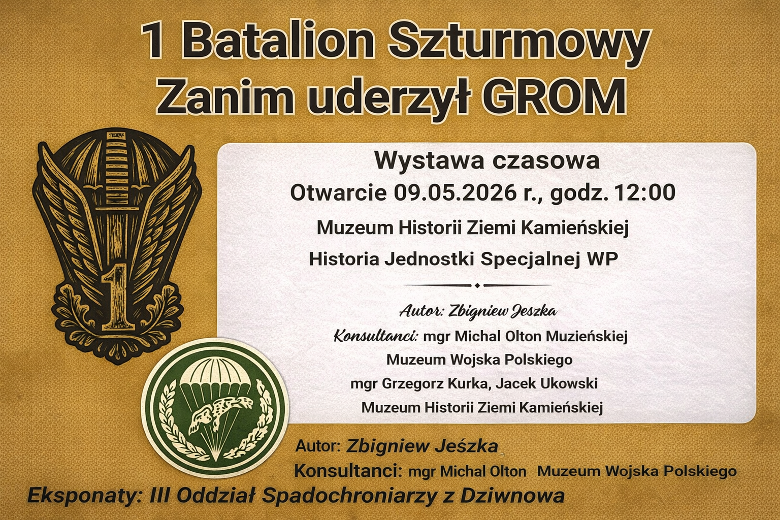 Miłośnicy historii wojskowości, pasjonaci militariów oraz wszyscy zainteresowani dziejami polskich formacji specjalnych mają powód, by odwiedzić Muzeum Historii Ziemi Kamieńskiej. Rusza tam nowa wystawa czasowa pod tytułem „Zanim uderzył GROM”.