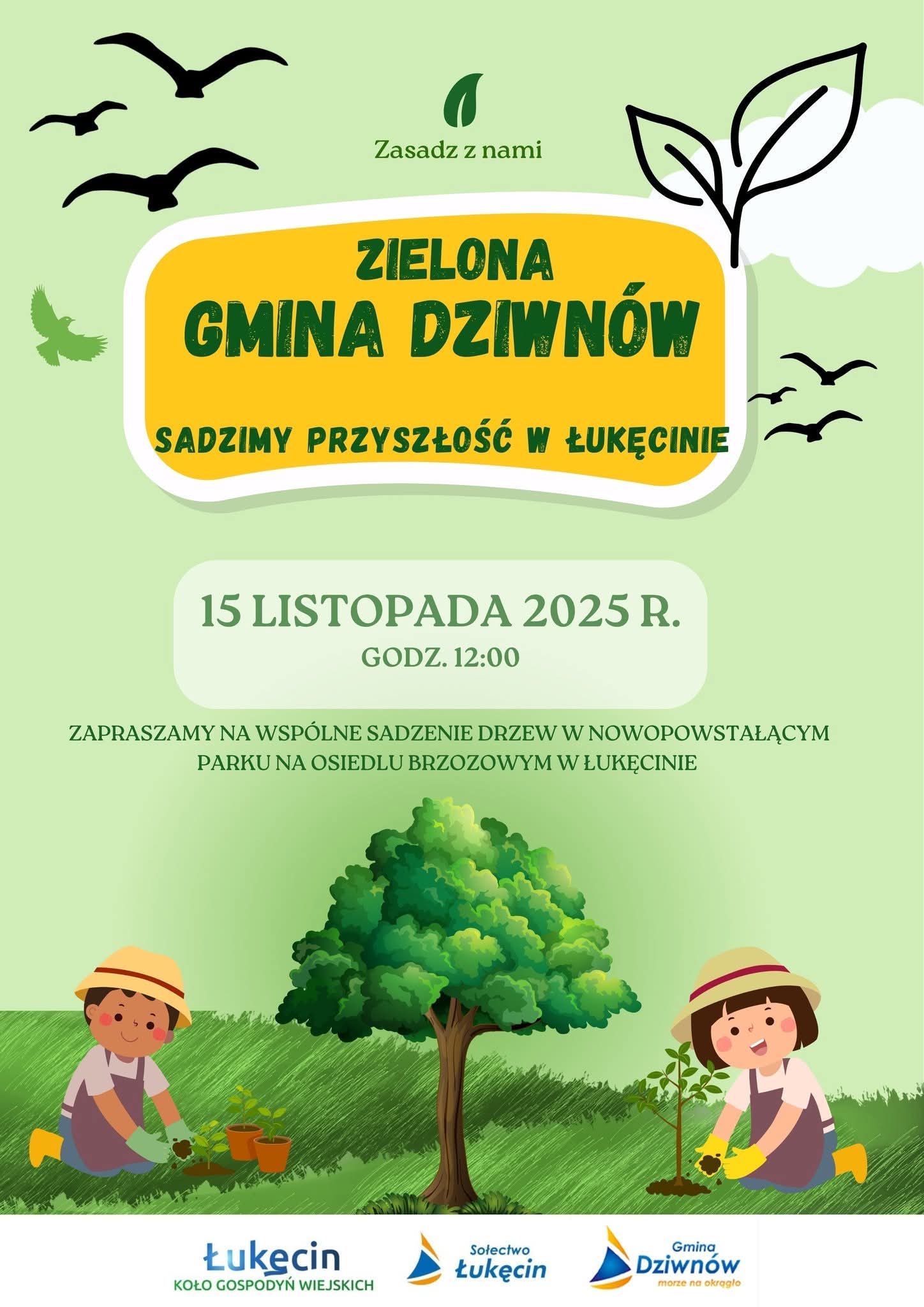 W najbliższą sobotę, 15 listopada 2025 roku o godzinie 12:00, mieszkańcy Łukęcina spotkają się na Osiedlu Brzozowym, by wspólnie posadzić drzewa w ramach akcji „Zielona Gmina Dziwnów – Sadzimy Przyszłość w Łukęcinie”.